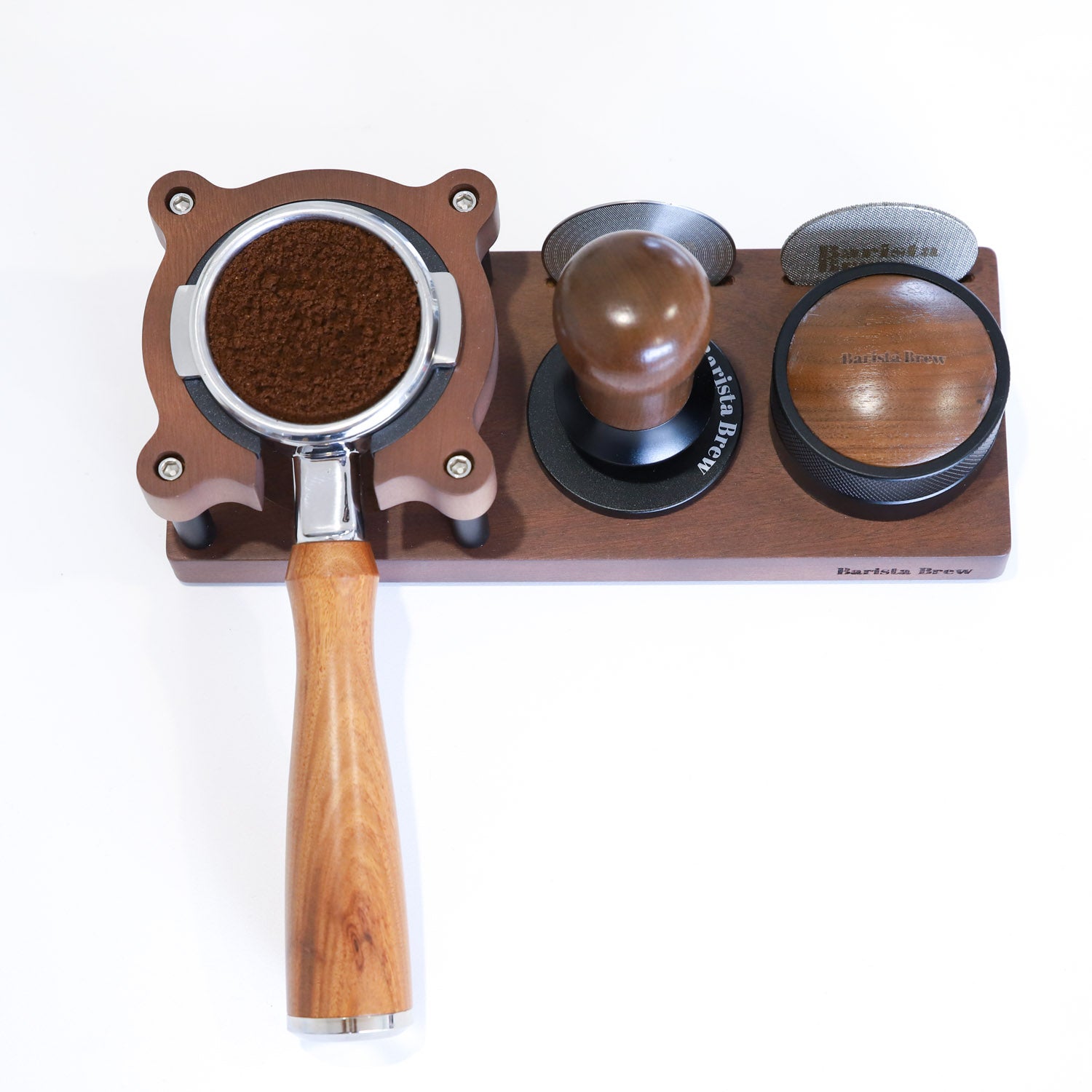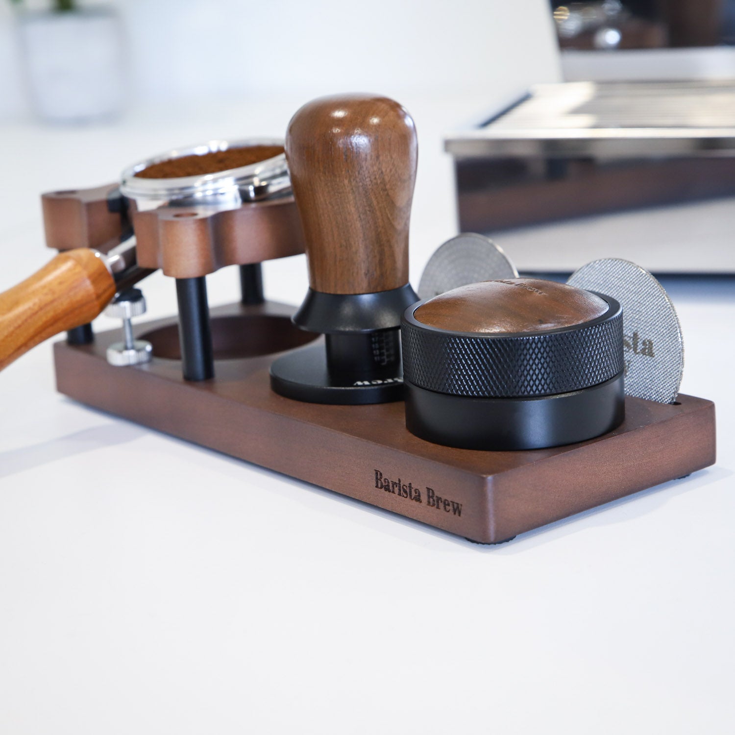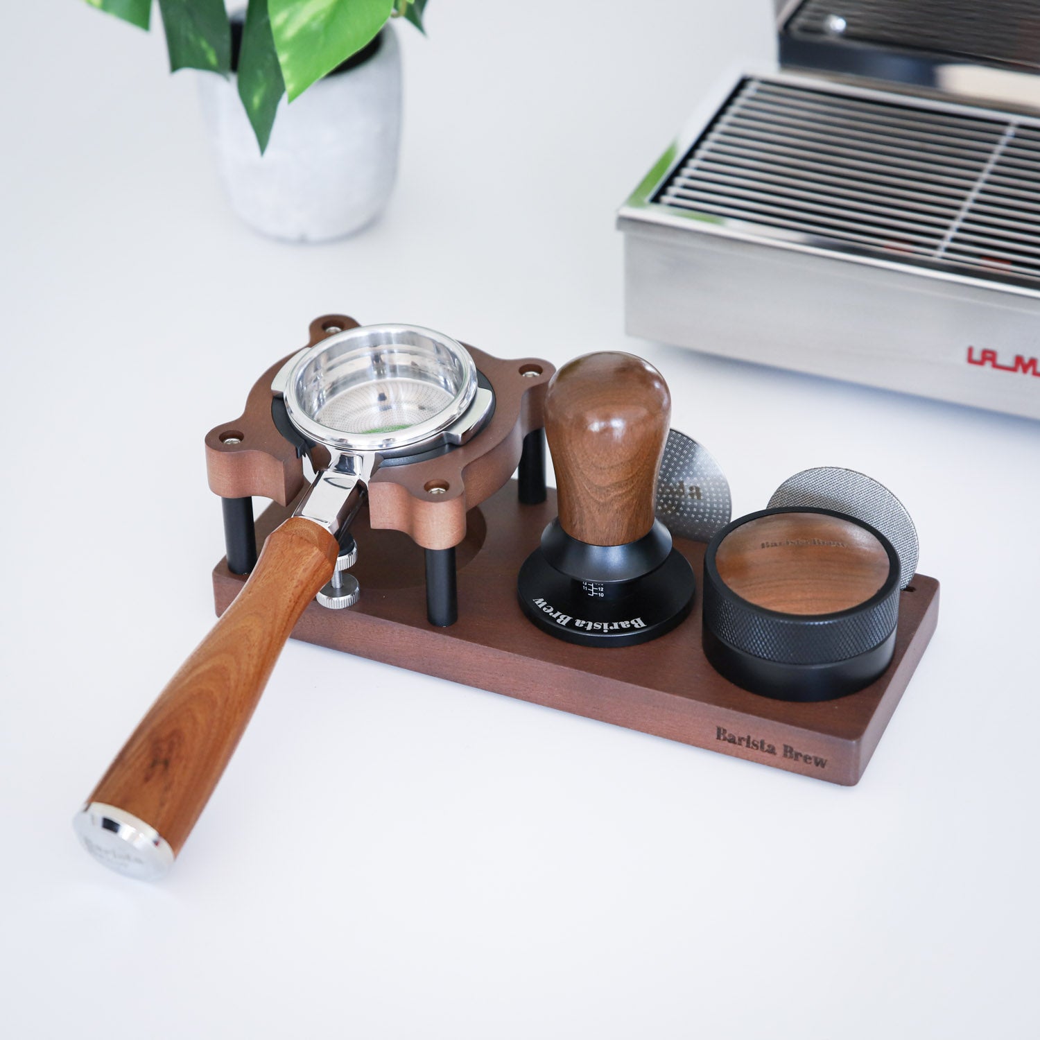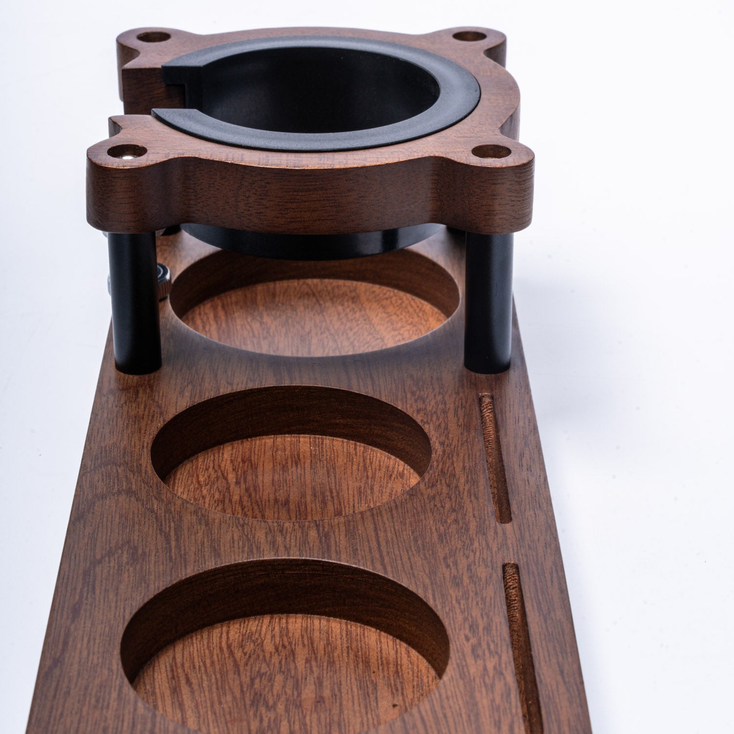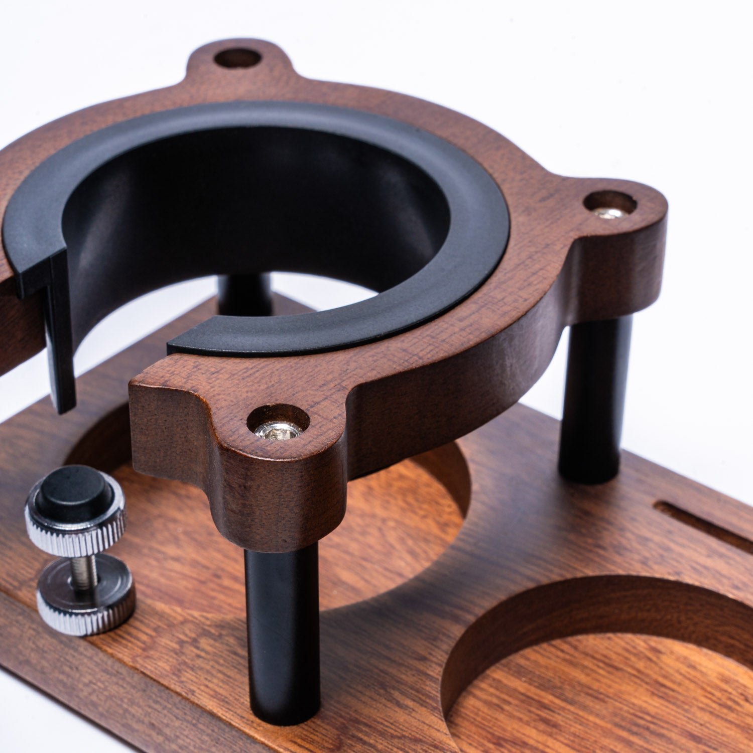 Crafted from rich natural walnut wood and built with precision, this refined tamping station is designed to enhance both your espresso workflow and your coffee bar aesthetic. Its compact size makes it perfect for home setups or professional spaces, while the natural grain and premium finish add timeless style that is made to last.