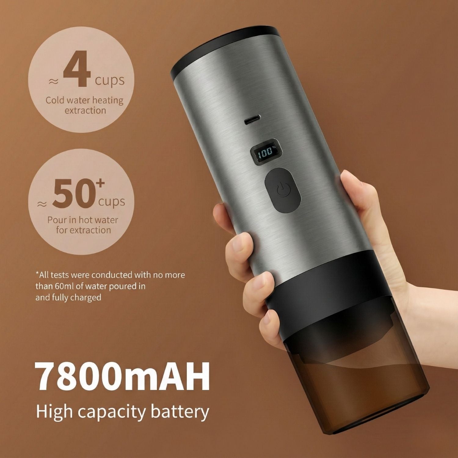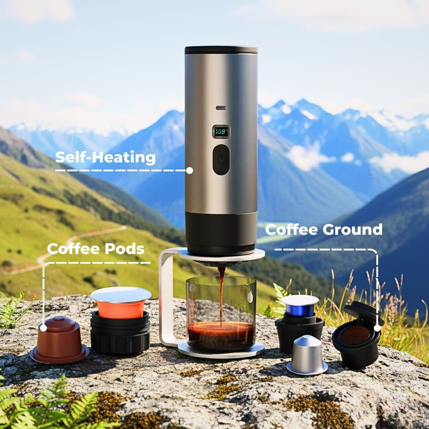 The Self-Heating Portable Electric Espresso Machine gives you real cafe quality espresso anywhere you decide to take a break. It heats its own water, powers a proper extraction, and lets you use your own premium coffee beans or capsules so you always get the flavour you love, no matter where you are.